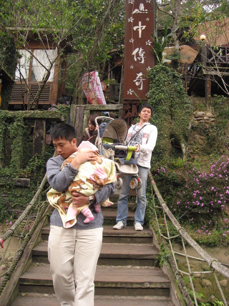 有點冷,葉胖緊抱著布布,自認的乾爹在後頭假裝娃娃車很重(大哥我們那是"俗米"沒那麼重啦)